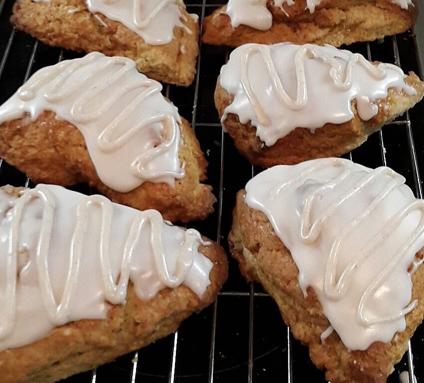 I was wondering what to do with my pumpkin purée (there is only so much pumpkin pie you can make!) and stumbled across this recipe for pumpkin spice scones. They are very quick and easy. To be honest you don’t really need the icing, they are nice without, and being Scottish I prefer my scones simple!!! But I wanted to get close to the Starbucks version.